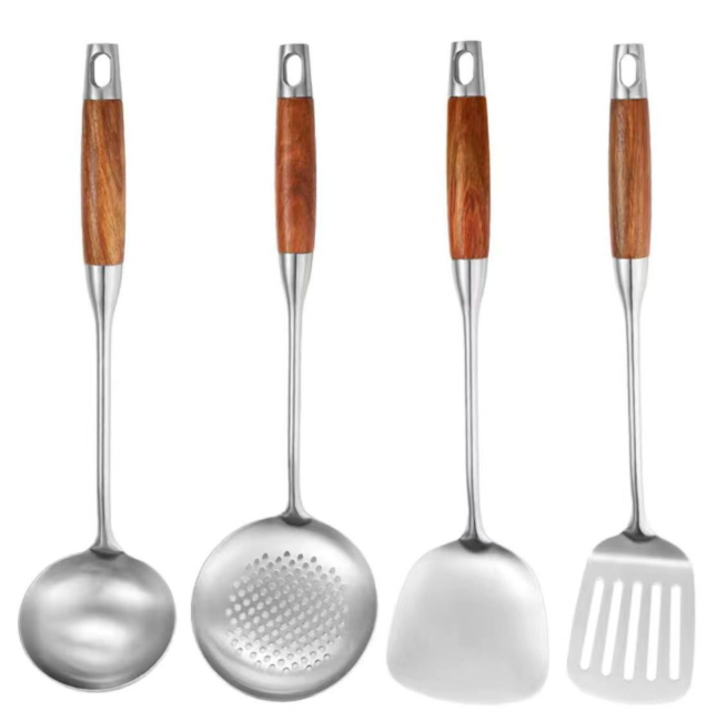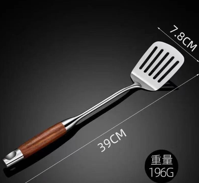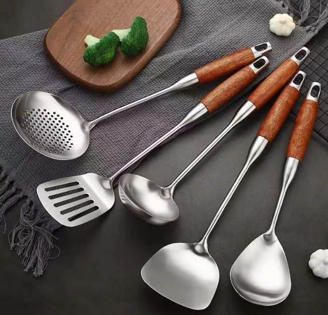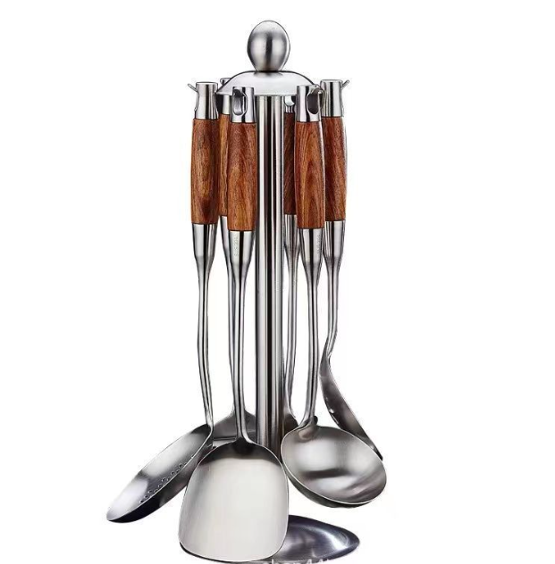 A 7-piece set of household rosewood kitchenware, including soup spoons, spatulas, frying spatulas, and strainers, made of stainless steel quantity