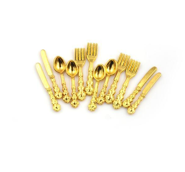 Dollhouse Miniature Simulation Food Toys Classical Knife, Fork, Spoon Western Tableware
